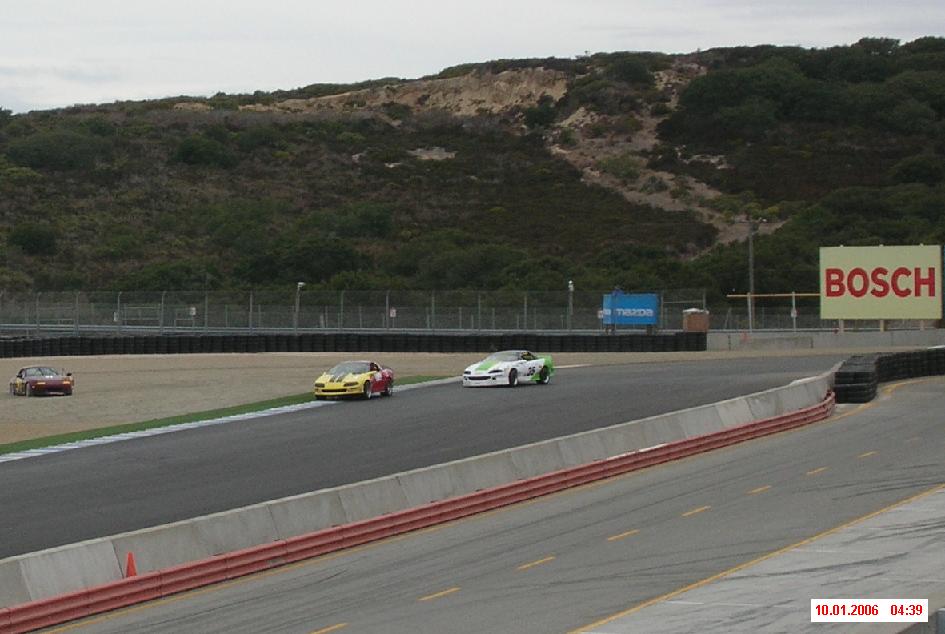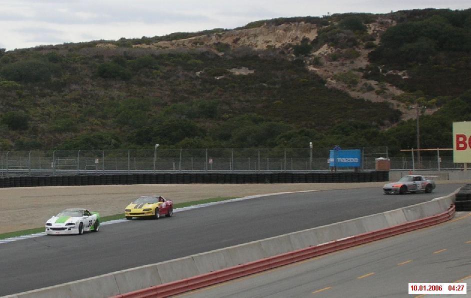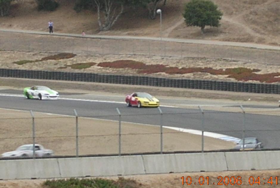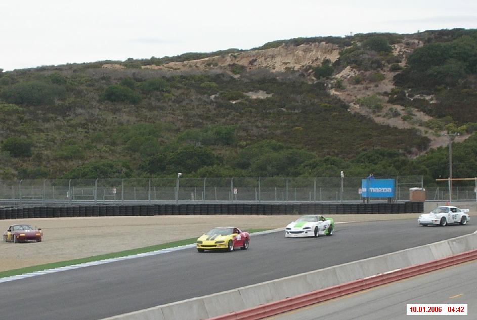 The following shots were taken at our Laguna Seca races Sep 30 and Oct 01, 2006. First a couple shots from race #1 and then several from race #2. Both were close races with Randy Mackintosh in his white and green Camaro.